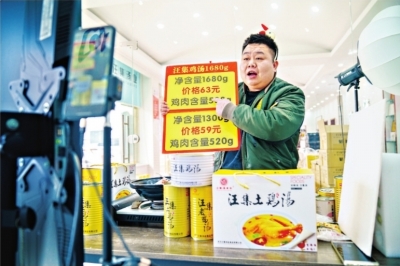 主播正在推荐汪集鸡汤。长江日报记者刘帅摄