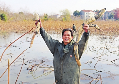 当下正是莲藕采挖的旺季,藕塘里时常传来惊呼声和欢笑声。看着一根根品质、颜值俱佳的莲藕,李正旺笑着说:“通过在直播间不断科普蔡甸莲藕文化、推荐莲藕美食,蔡甸莲藕的品牌知名度提升不少,现在每天的鲜藕都供不应求,用莲藕制成的粉条、热干藕粉等产品在网上也卖得十分火爆。”