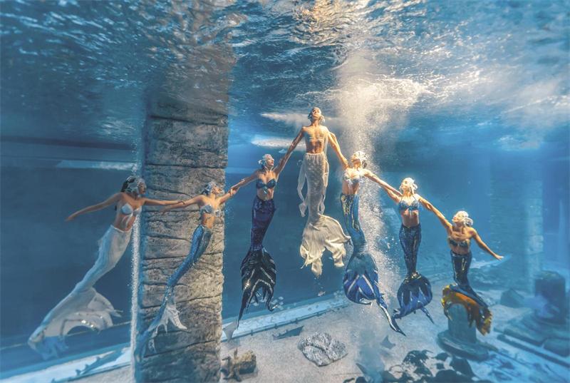 更绝的是“戏剧+商业”的创新玩法。“正佳星球·音悦剧之夜”融合剧场、秀场、体验场、社交场体验,观众白天逛完博物馆,晚上就能在海洋馆看《鲛人魅影》海底大秀,还能去雨林馆参加一场夜光森林音乐会,又或是前往正佳大剧院欣赏经典无言喜剧《乱打神厨秀》。这种“白天逛街、晚上看剧”的模式,让正佳广场的夜间客流占比大幅提升。
